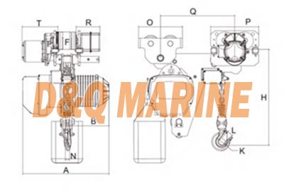 | Type | Capacity | H | A | B | F | K | L | N | O | P | Q | T | R | I-BEAM |