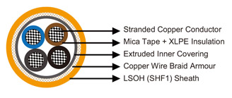 Cable Feature:0.6/1 kV Mica Tape + XLPE Insulated, LSOH (SHF1) Sheathed, Armoured Fire Resistant,Flame retardant, low smoke & halogen free.