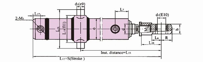 | Cylinder bore D(mm) | Φ | d | d1 | R | b | L6 | M2 | L10 | L5 | L7 | L2+S | M1 | H1 | Φ1 | ||